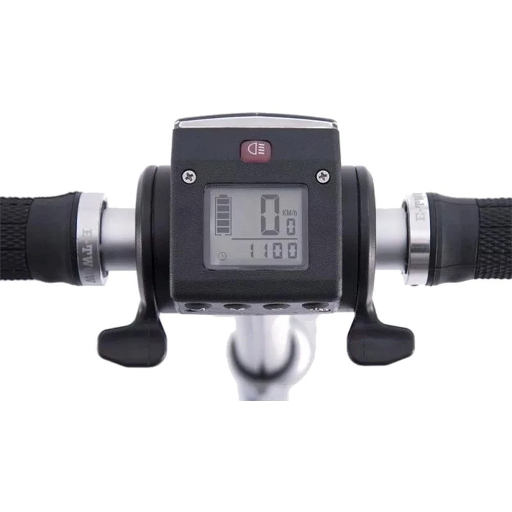 Мощность двигателя 350 Вт, скорость которую максимально может развить транспортное средство 30 км/ч. Передние и задние тормоза корректируют движение.