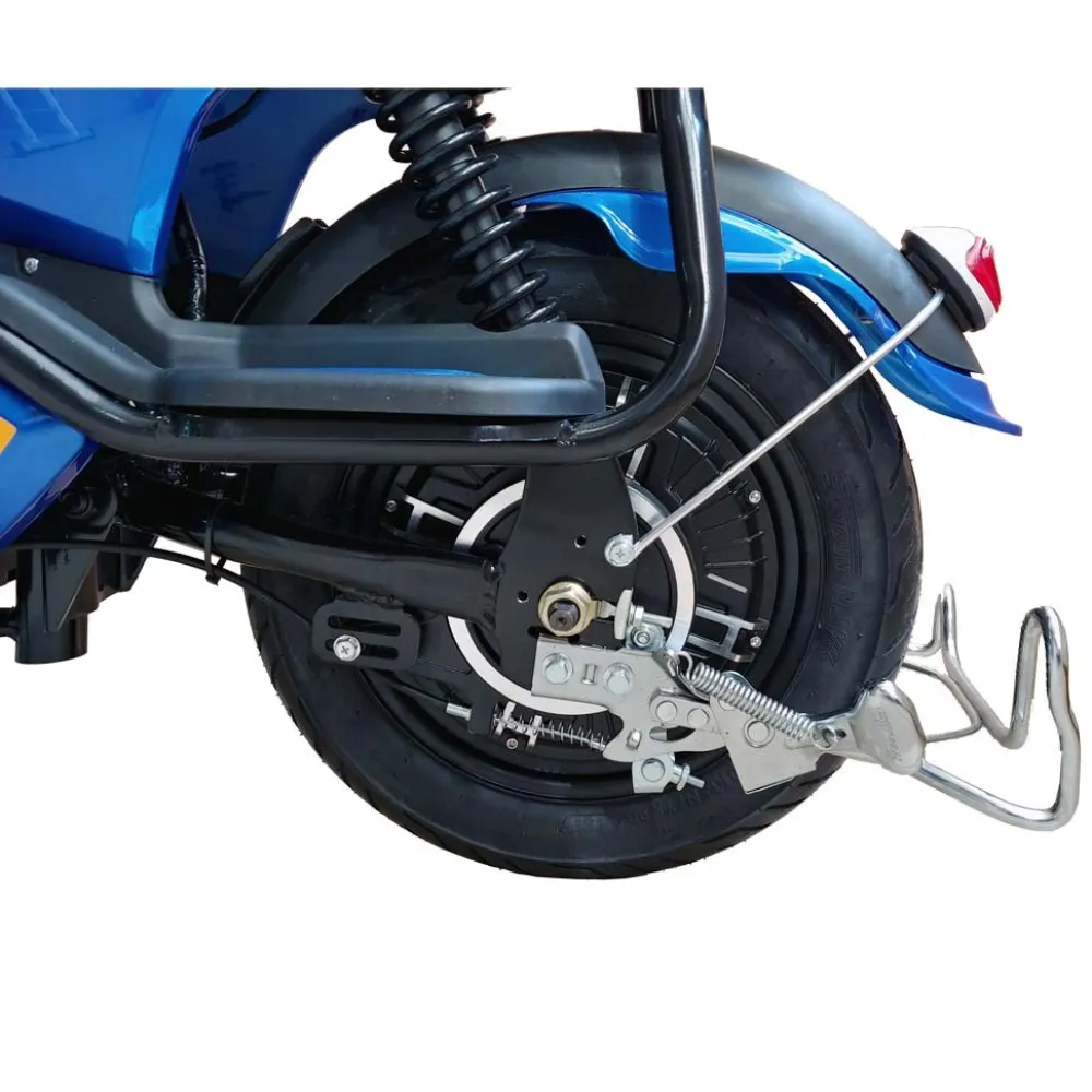 Максимально допустимая нагрузка 150 кг возможна благодаря усиленной стальной раме. Широкая платформа под ногами позволяет райдеру чувствовать себя комфортно при длительных поездках. Тормозная система из механики и электрики работает безотказно. Яркий фонарь хорошо освещает дорогу. Корзинка на руле с запирающимся замком позволит комфортно перевозить небольшой груз или покупки.