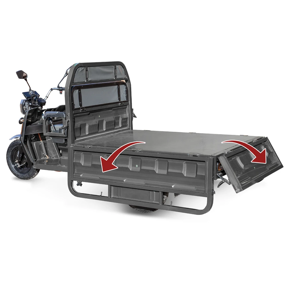 Грузовой электротрицикл Rutrike Маяк 1600 60V1000W в сером цвете - это надежное и эффективное транспортное средство для перевозки грузов. С его мощным 1000-ваттным двигателем, он способен развивать скорость до 25 км/ч, что позволяет быстро доставлять грузы на дальние расстояния.