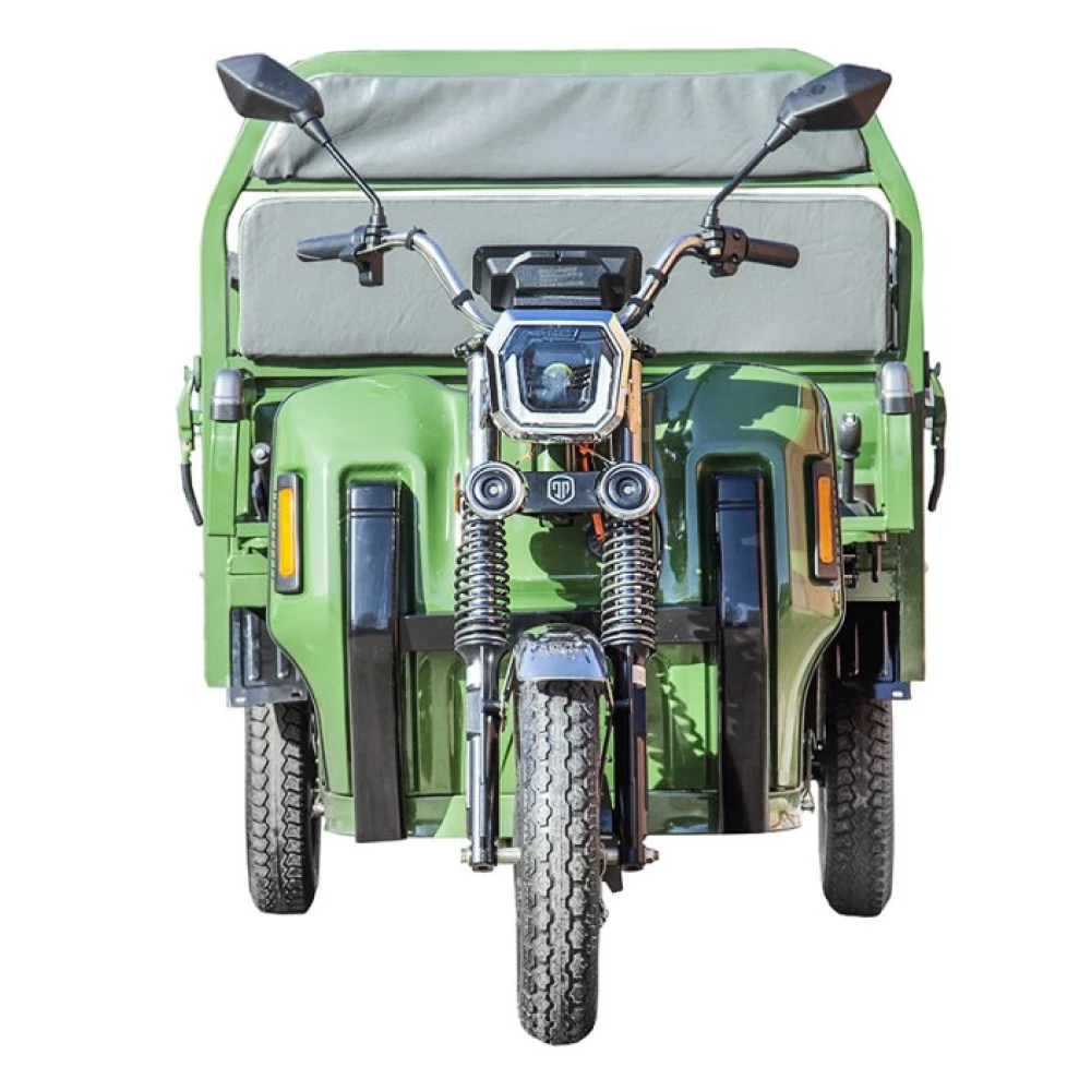 Грузовой электротрицикл Rutrike Маяк 1600 60V1000W зеленого цвета - это надежное и эффективное транспортное средство для перевозки грузов. Его мощность, грузоподъемность и барабанные тормоза делают его отличным решением для различных бизнес-потребностей.